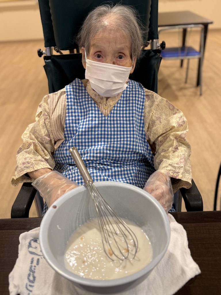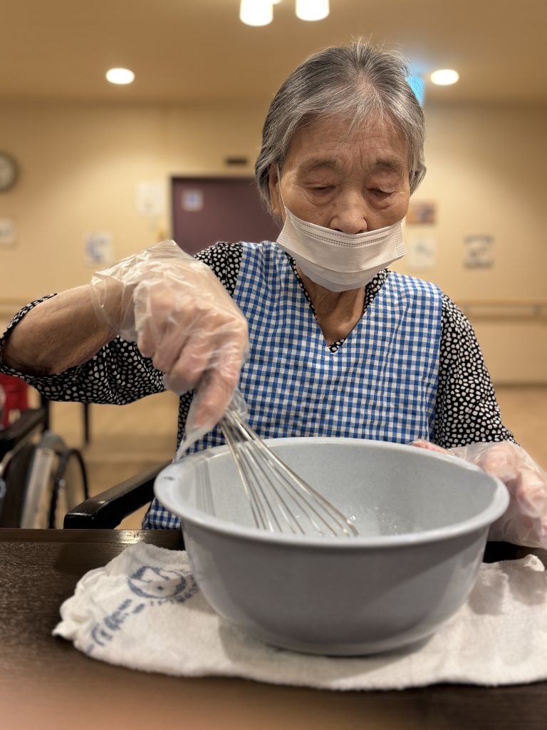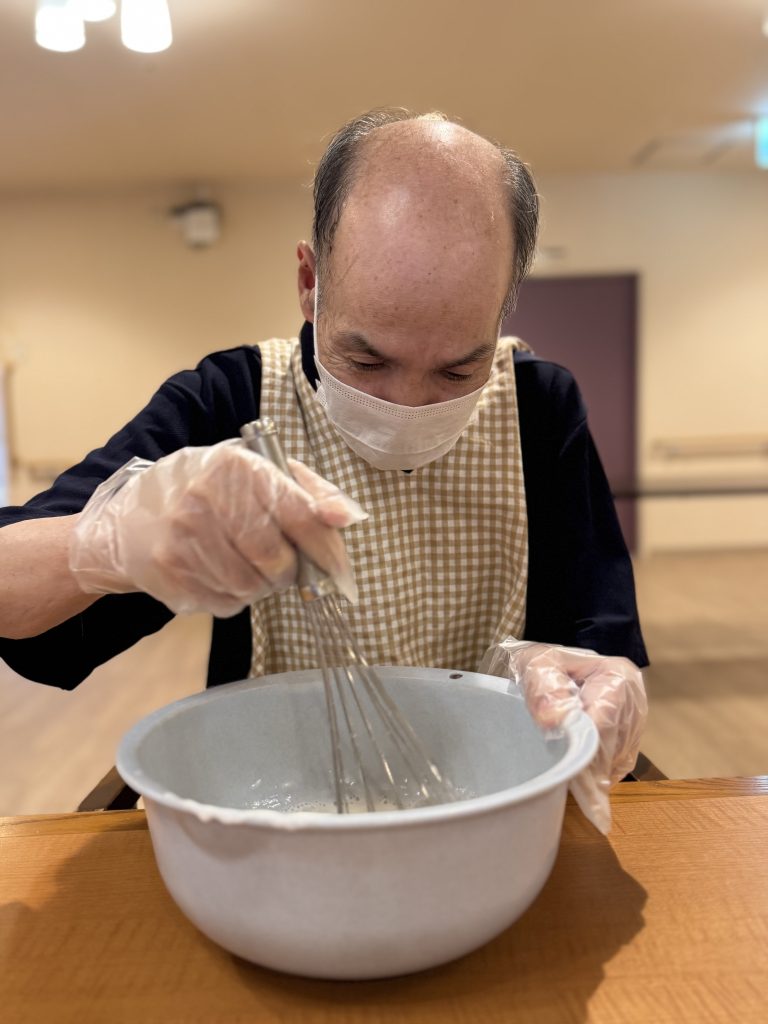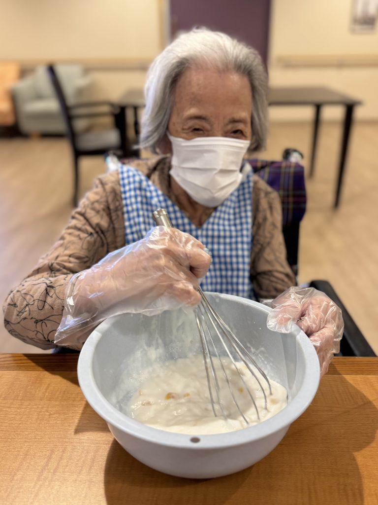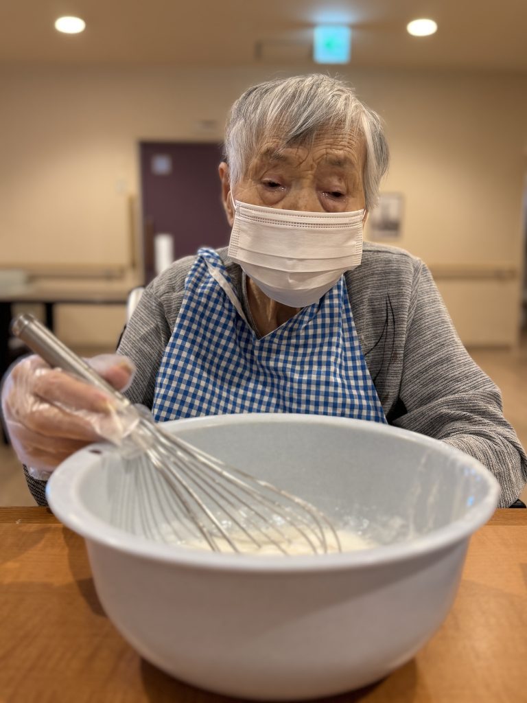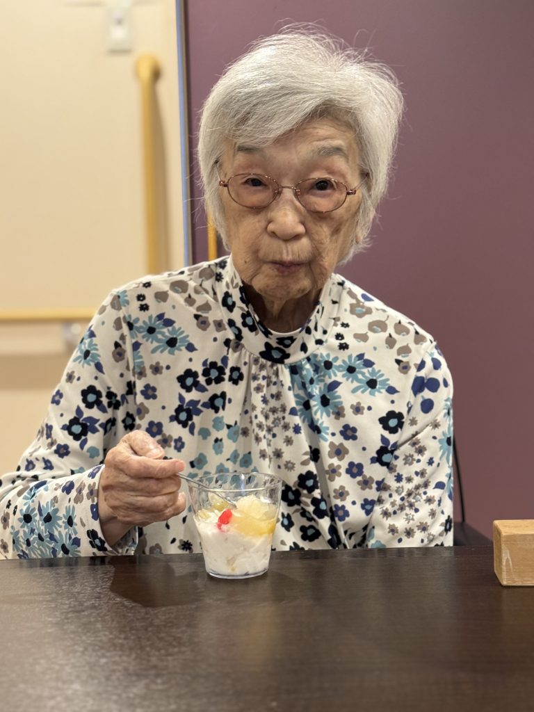 3階の皆様から「またしてくれ」と熱い要望があったフルーチェを開催させていただきました。 ミカンや桃やパイナップルのトッピングも思い思いに楽しまれていました「こんなに載せていいの」「入れ物一杯に入れるで」と言われながら盛り付けておられました。 出来上がりを「美味しいわ、また絶対にしてや」と大変喜んでいただけました。