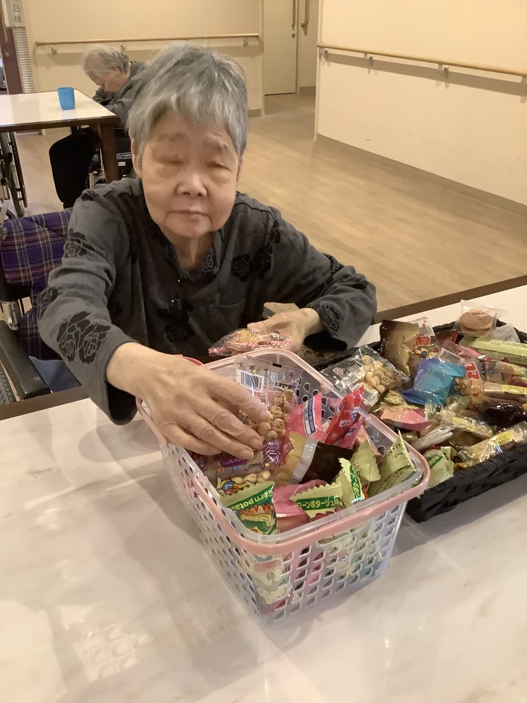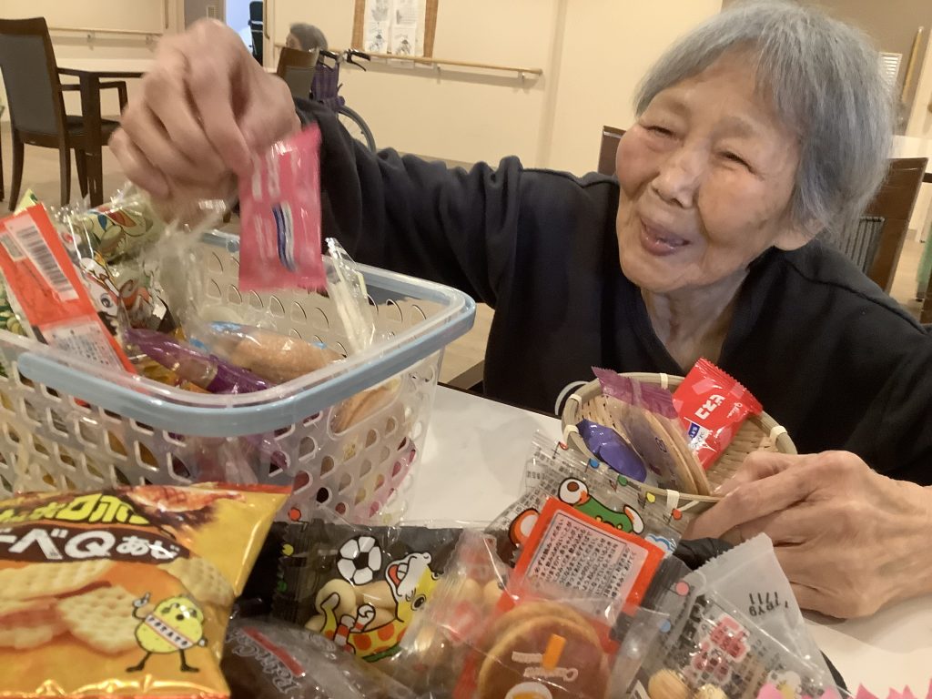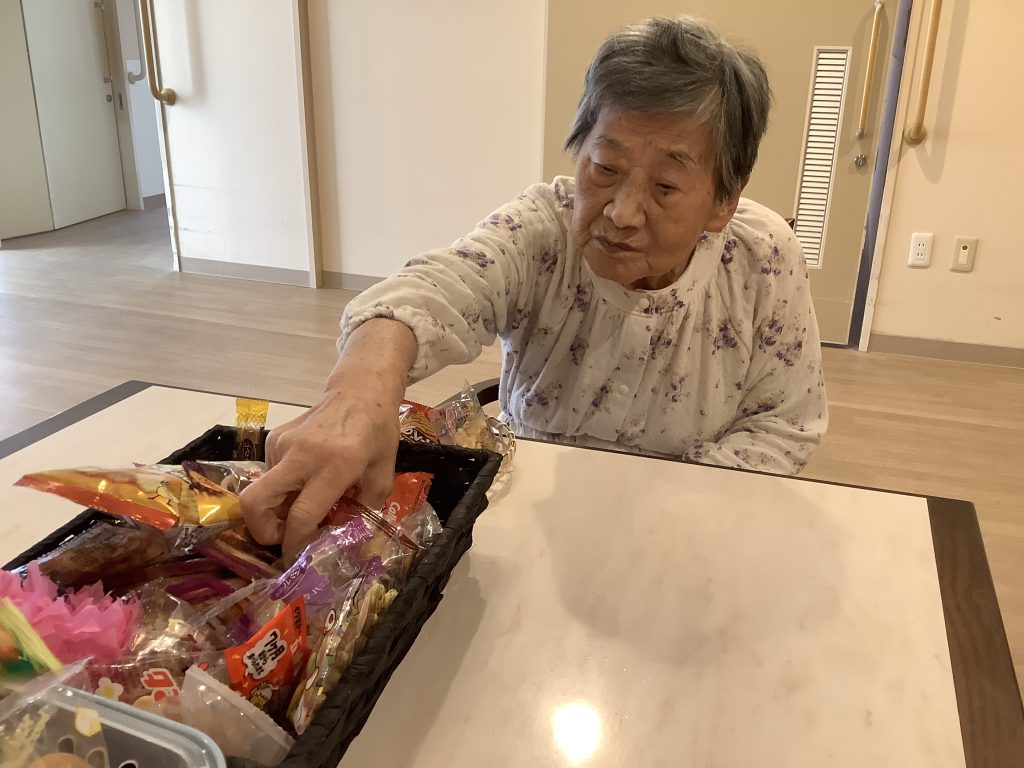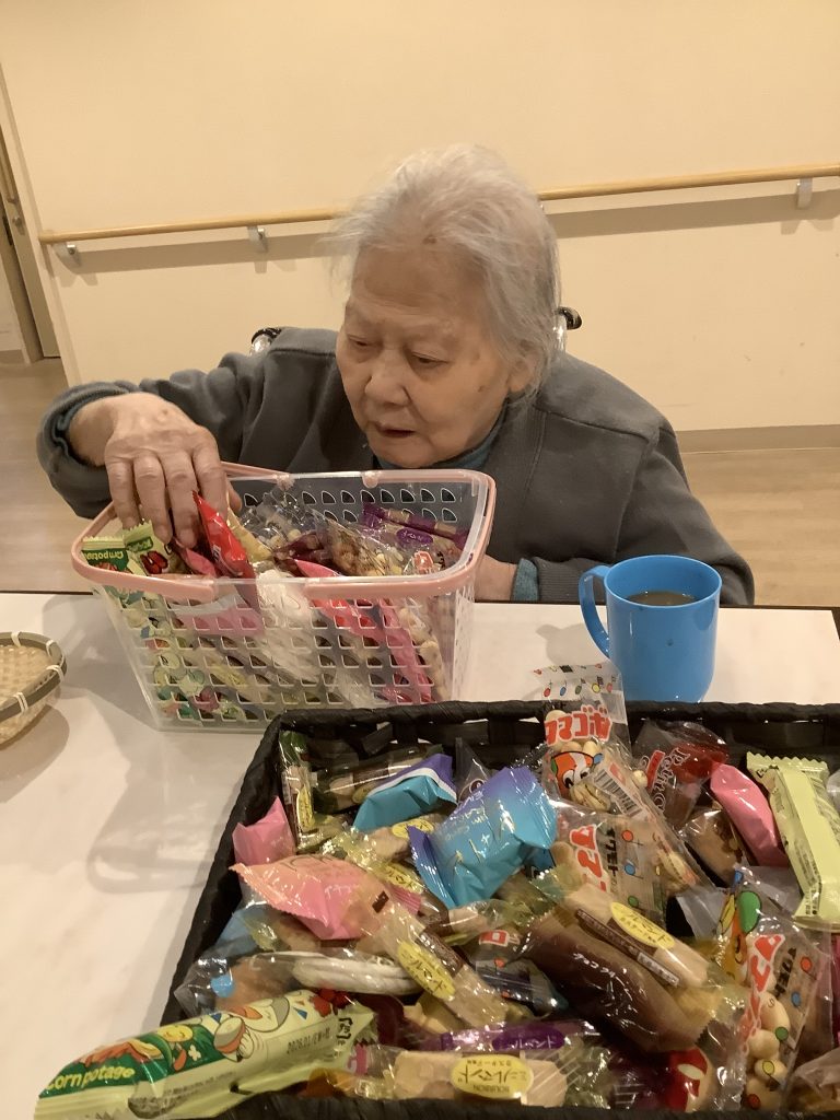 カゴに残っている駄菓子を見て、「これ余ったるんか?」「おかわりしてええ?」とおかわりされる方もおられ、皆さま大変喜んでおられました。