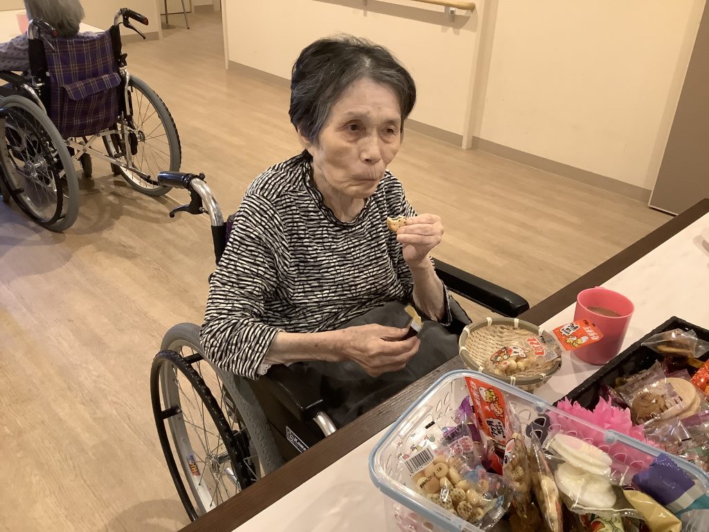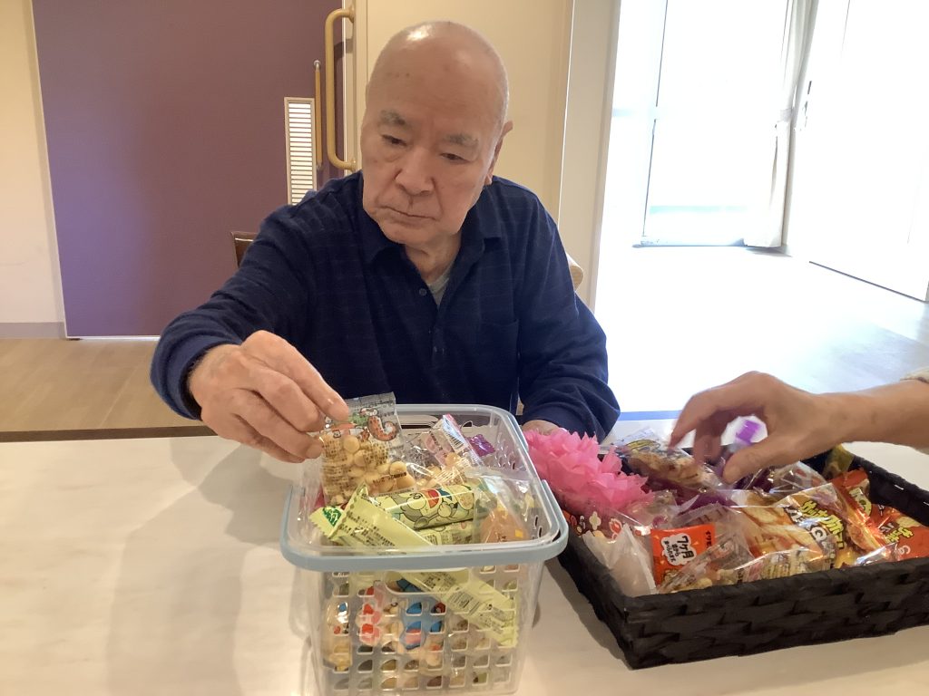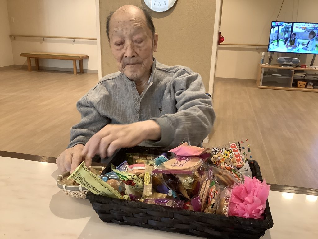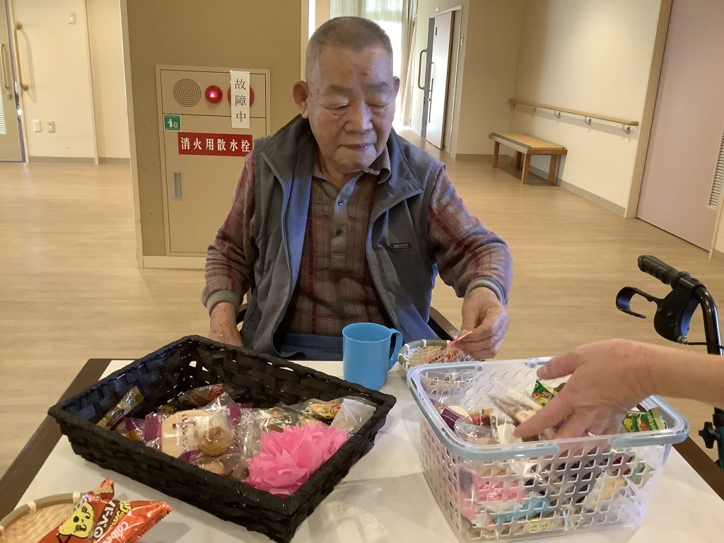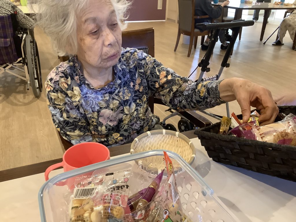 カゴに残っている駄菓子を見て、「これ余ったるんか?」「おかわりしてええ?」とおかわりされる方もおられ、皆さま大変喜んでおられました。